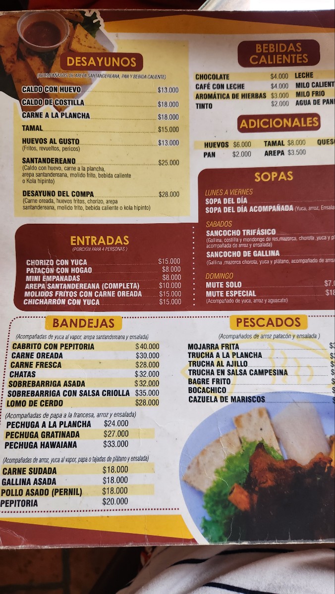 Welcome to Restaurante El Compa, a culinary gem nestled in the heart of Barichara, Santander. This charming eatery offers a delightful array of traditional Colombian dishes that cater to both vegetarians and meat lovers alike. The highlight of the menu is undoubtedly the Menu del Dia, featuring generous portions like the stewed beef shank and flavorful fried fish, perfect for those looking for an authentic taste of the region.
